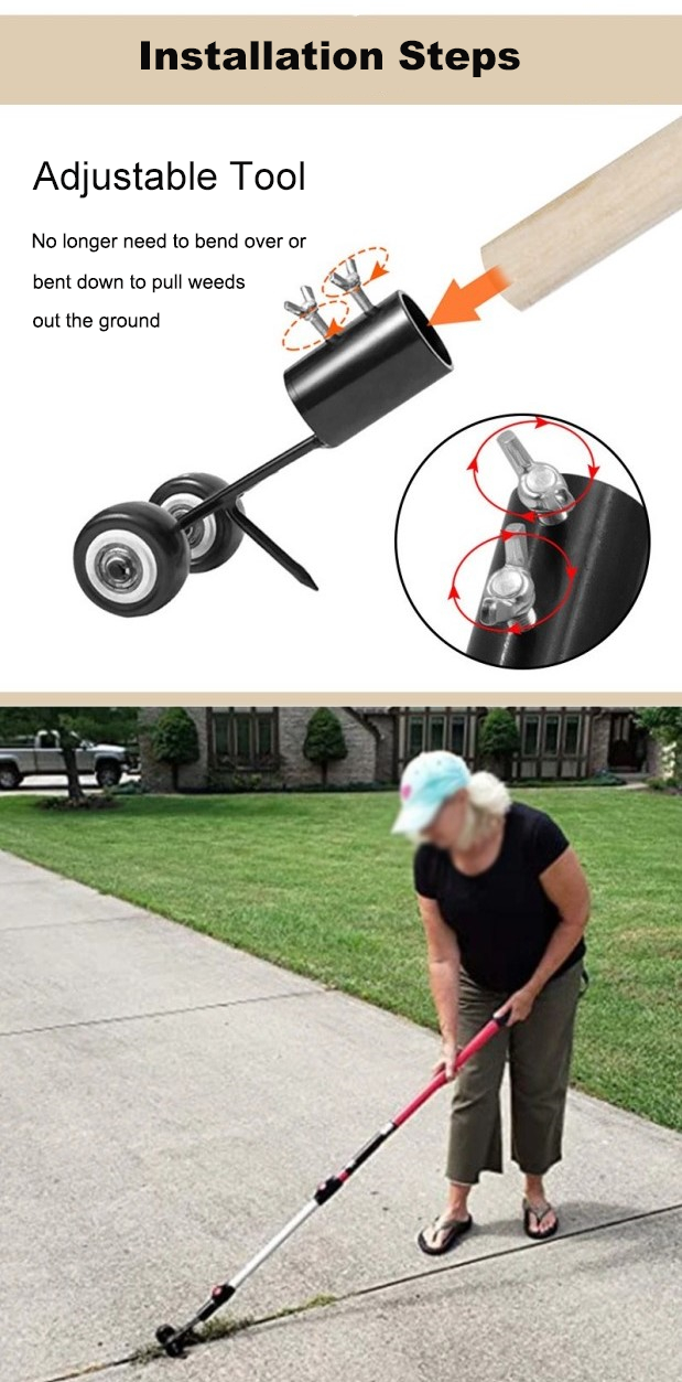 ADJUSTABLE CONNECTORS】Easy to use and install, the connectors of weeding attachments are adjustable, just twists the screws to adjust and fix it, a great garden tools for you to clean up the weeds.