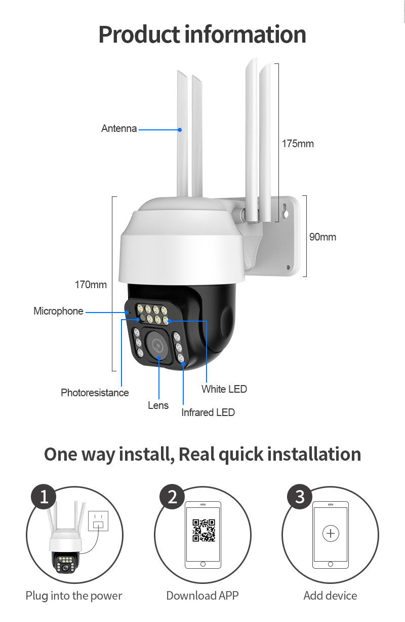 [Wide Range Of Applications]: This wireless camera is widely used in families, courtyards, gardens, warehouses, construction sites, farms and other places.