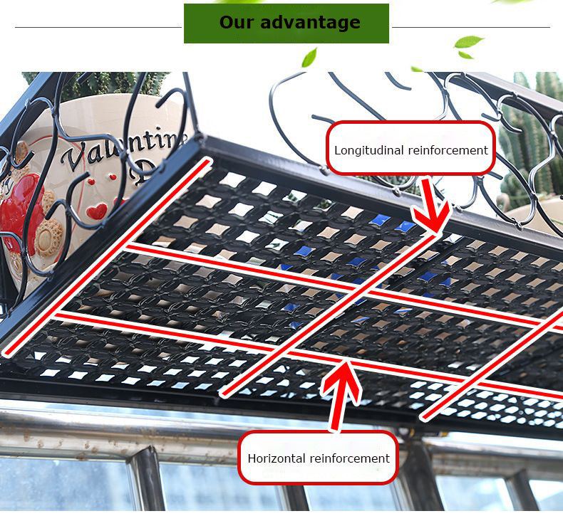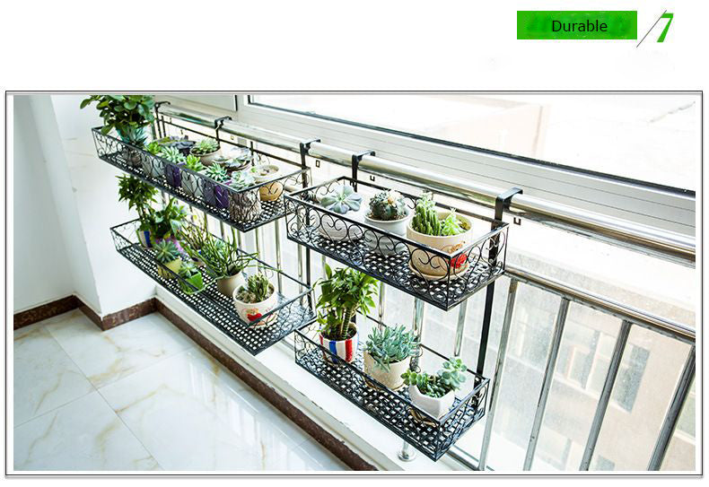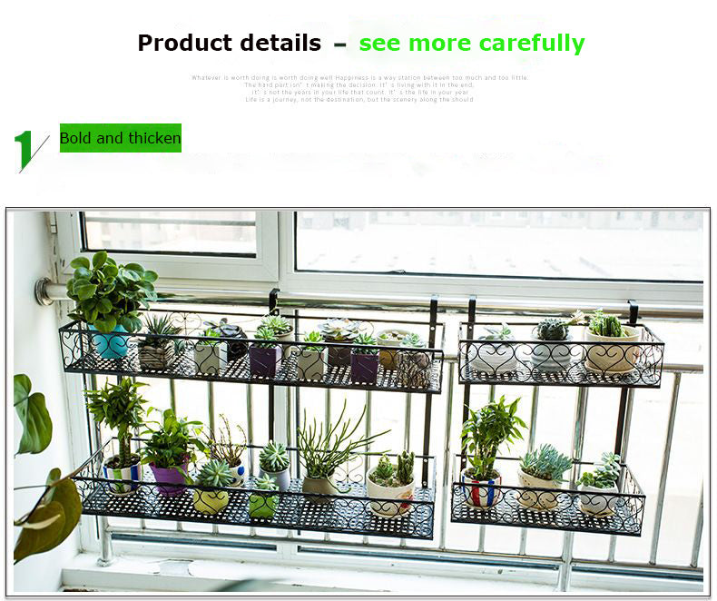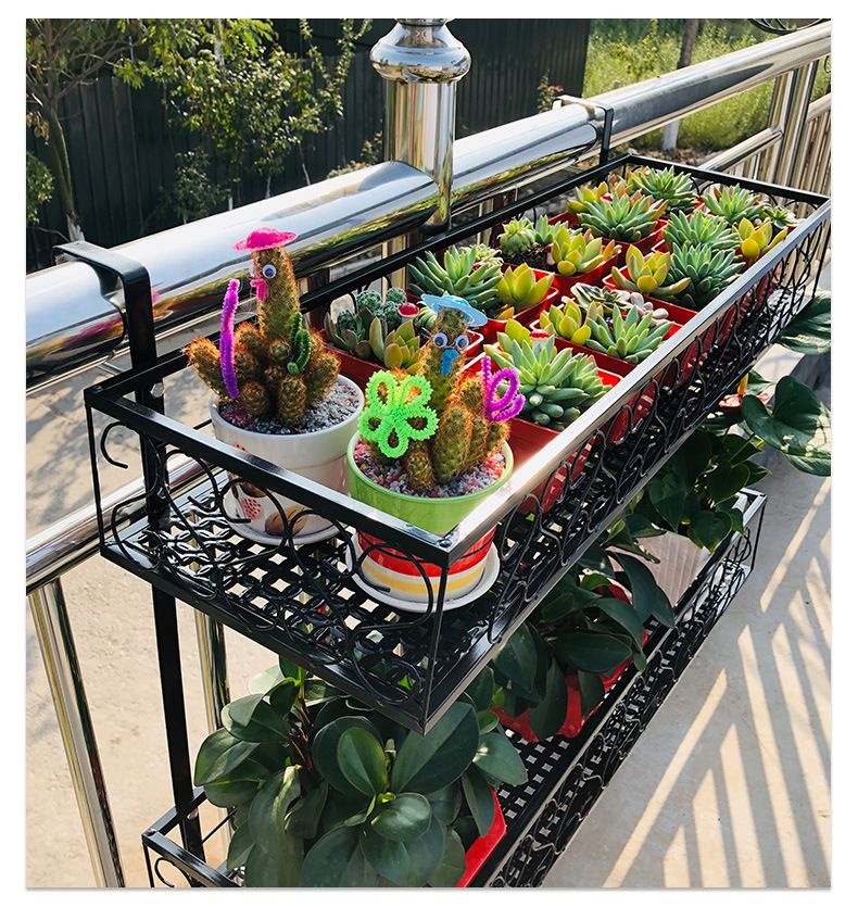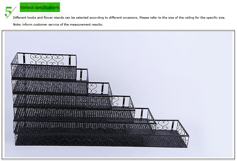 Our flower stand is suitable for balcony square railing flower stand, multi-function, can be used to store flowers, house items, drying shoes. Reinforced and thickened iron, strong bearing capacity, optimized design of brackets and hooks, thickened brackets, reinforced by welded steel bars at the bottom of the grid, firm and stable. The flower stand meets different specifications, and suitable hooks can be selected according to different hanging occasions, and the specific size should be marked according to the size of the railing. Static high temperature baking, metal iron static high temperature baking paint, really do not drop paint, color, and deformation of crafts. Our flower stand accommodates many green plants, with a lateral width of 25cm, large and small flower pots are easily and neatly placed.
