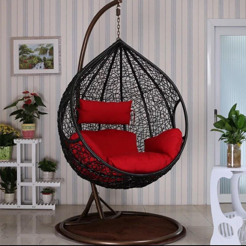 Hanging Basket Rattan Chair Bird's Nest Hammock Indoor Leisure Balcony Outdoor Swing Lazy Bedroom Drop Cradle Chair Single King - With Armrest (black)