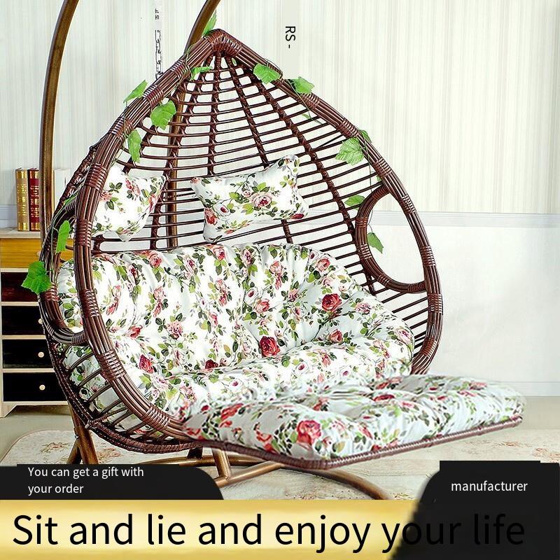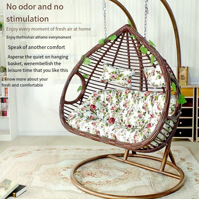 Hanging Basket Rattan Chair Double Indoor Swing Balcony Bassinet Chair Bird's Nest Hammock Lazy Person Drop Chair Double Pole Coffee Color