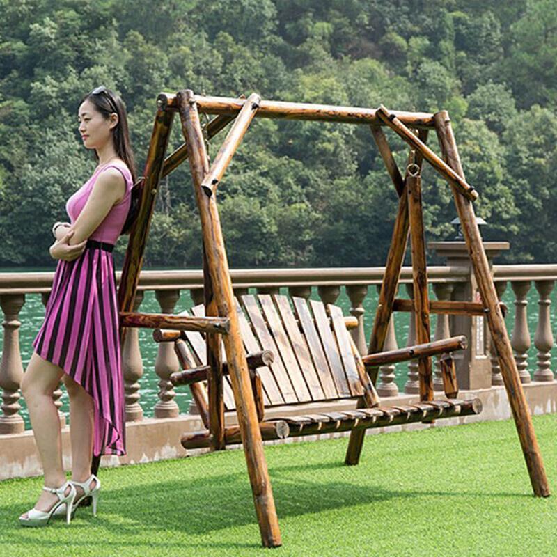 Outdoor Solid Wood Rocking Chair Carbonized Wood Swing Hanging Chair Park Courtyard Balcony Leisure Chair Double Table Chair Small Swing