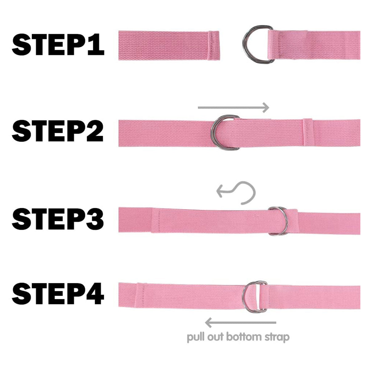 【D-ring Design】The metal D-ring buckle holds the strap securely and won't slip ,allows you to stretch safely without constantly being frustrated or having to readjust. The benefit to a D-ring strap is its durability compared to a plastic one.