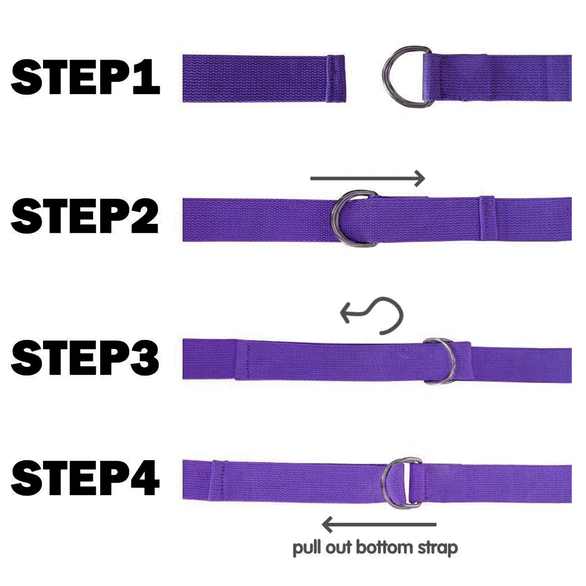 2.Durable cotton fabric: We deeply understand that your training equipment needs to be heavy-duty and durable. That’s exactly why we recommend our yoga belts to you so sincerely. The durable cotton fabric will prevent tearing while the adjustable D-ring cinches will ensure your safety!