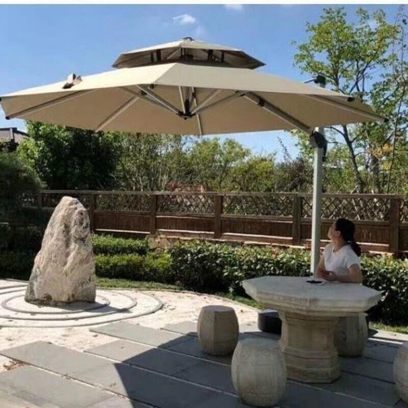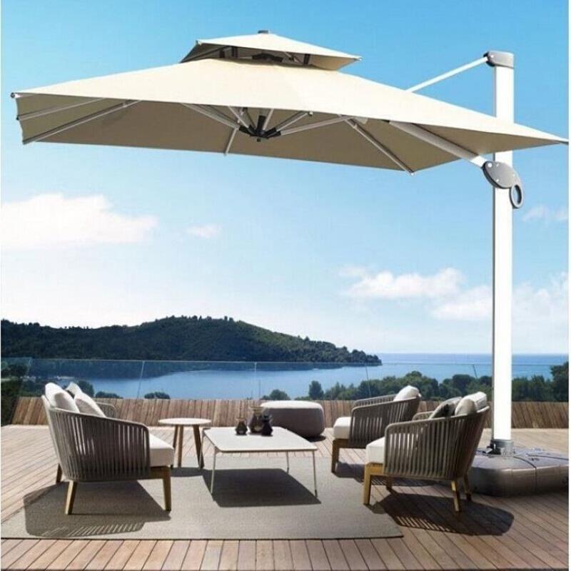 Outdoor Garden Umbrella Courtyard Umbrella Villa Outdoor Balcony Outdoor Sun Umbrella Champagne Gold Square 2.5 M With 100 KG Water Tank