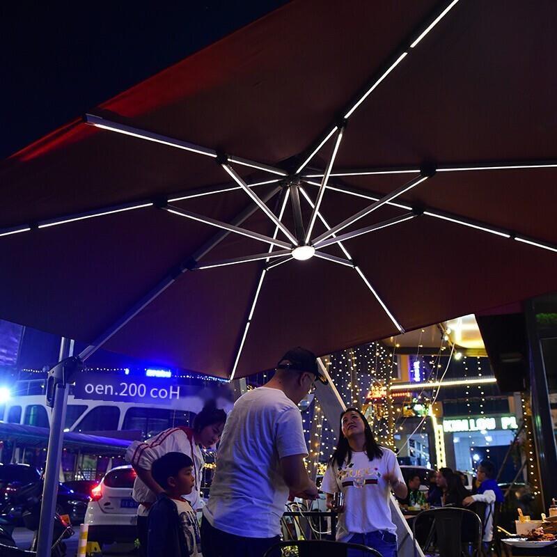Outdoor Sunshade Courtyard Umbrella Roman Large Balcony Terrace Garden Stall Umbrella 2.5m Square Led Light Strip [with 80kg Cement Base]