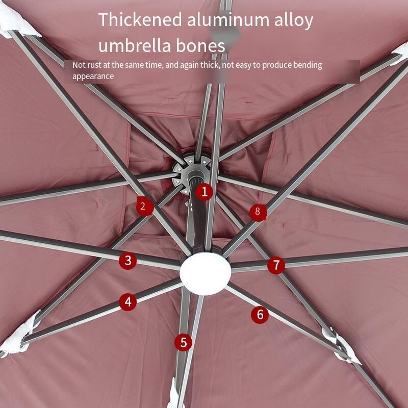 Outdoor Sunshade Large Solar Umbrella Large Outdoor Stall Balcony Terrace Garden Outdoor Umbrella Square 3m Wine Red Water Tank Base