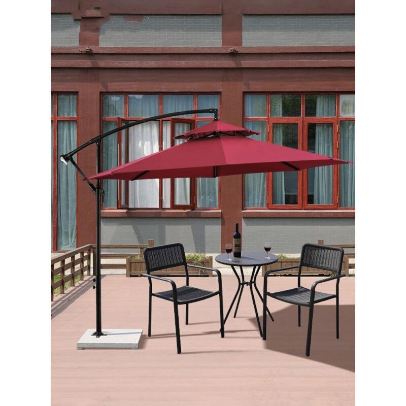 Outdoor Sunshade Umbrella Villa Garden Stall Sentry Box Sunscreen Folding Large Wine Red Extra Large 3m Hand Push Money [complimentary Water Injection Base]