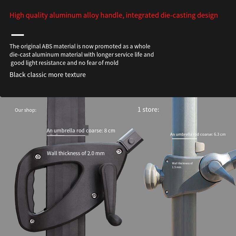 The high-quality aluminum alloy is used as the umbrella pole, which is light and durable. As the central main pole, the entire umbrella will be stronger. The aluminum alloy has good corrosion resistance and does not rust.