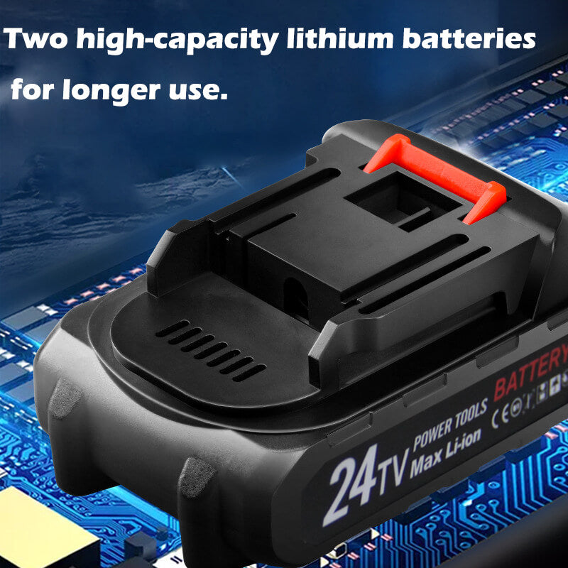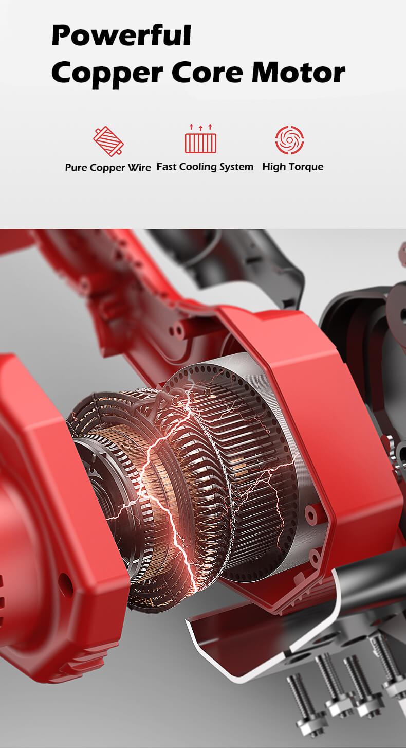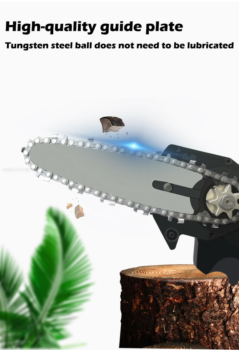 This cordless chain saw adopts high-quality guide chain and is deeply hardened to ensure the smoothness of cutting. In addition, it adopts a pure copper motor, which has strong power, higher cutting efficiency and faster speed.